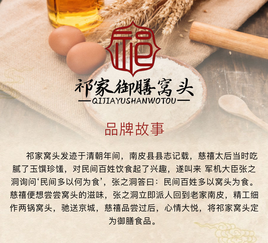 南皮祁家小米面窝头选料精细,制作讲究,其色泽嫩黄,清香扑鼻,香甜可口,营养丰富,老少皆宜。祁家小米面窝头内含人体必需的多种蛋白质、氨基酸、不饱和脂肪酸及人体所需的多种微量元素和矿物质,属低脂、低糖食品。