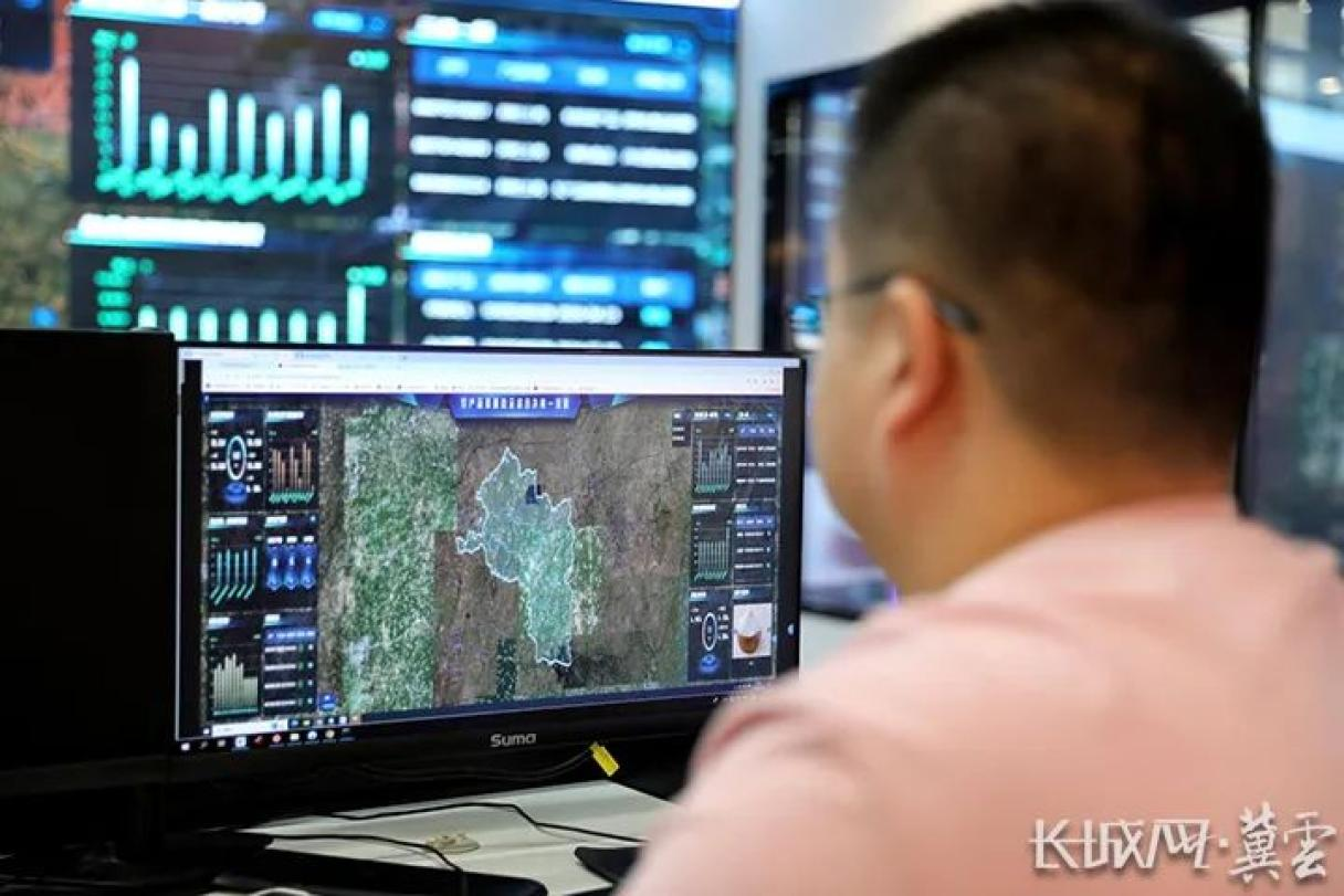 南皮县智慧农业大数据中心技术人员正在管理旱碱麦溯源系统。通讯员 靳东凯 摄
