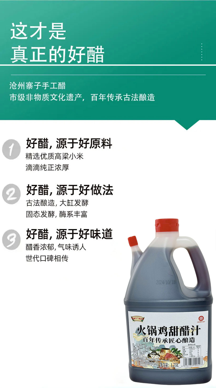 广盛源火锅鸡甜醋汁,精选优质陈醋,融入适量甜蜜,经独家调配,酸甜比例恰到好处。入口酸甜交织,浓郁醇厚,既解火锅鸡的火辣,又提鲜香之味,为味蕾带来一场刺激与柔美的双重盛宴,蘸食涮品皆美味,一尝就难忘。火锅鸡甜醋,一款专为火锅鸡而生的独特调味料。